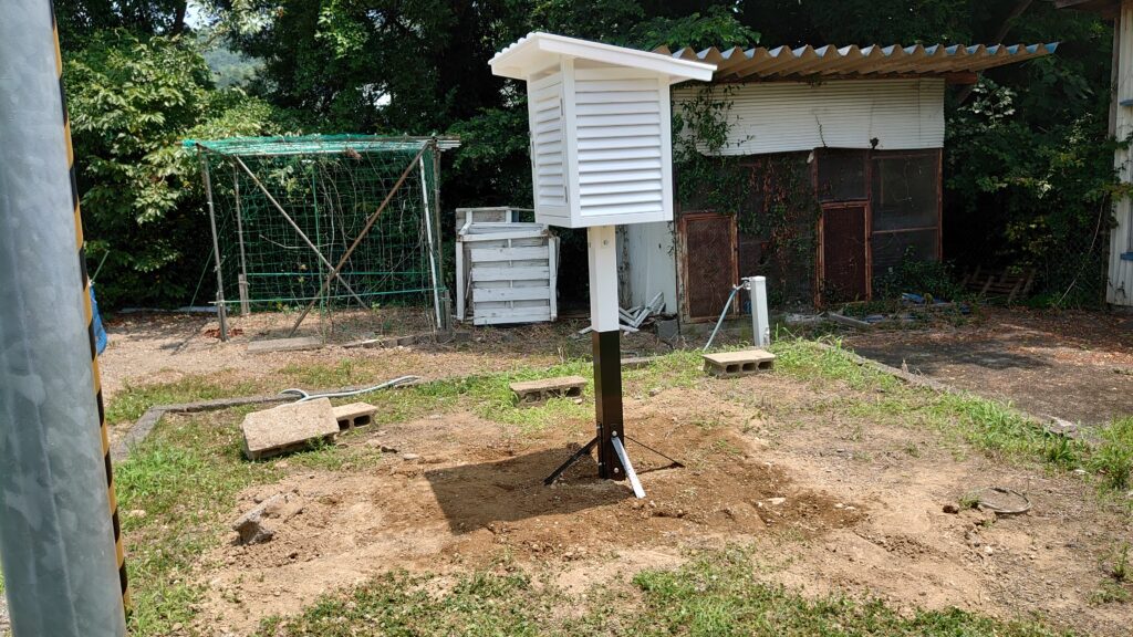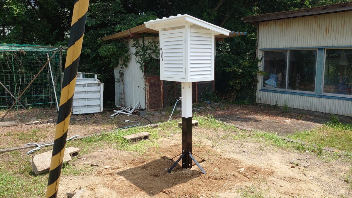 牧之原市内の小学校の校庭に百葉箱を設置しました。